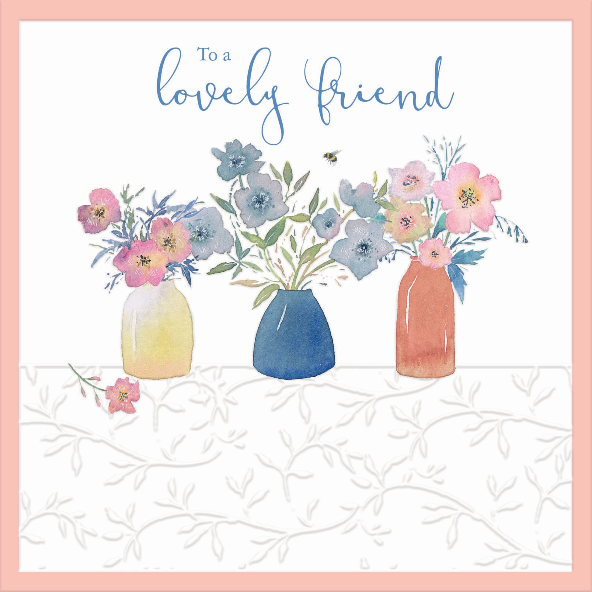 Celebrate your lovely friendships with our Vintage Garden Card featuring a charming illustration of three vases adorned with delightful blooms. This square card, measuring 137mm by 137mm, captures the essence of classic beauty and warmth. The gentle watercolour design, crafted by artist Anne Mortimer, makes this card a delightful choice for any birthday wish. The thoughtful message inside expresses heartfelt birthday wishes, making it perfect for sharing those special moments with friends in your life who deserve a little extra love and appreciation.