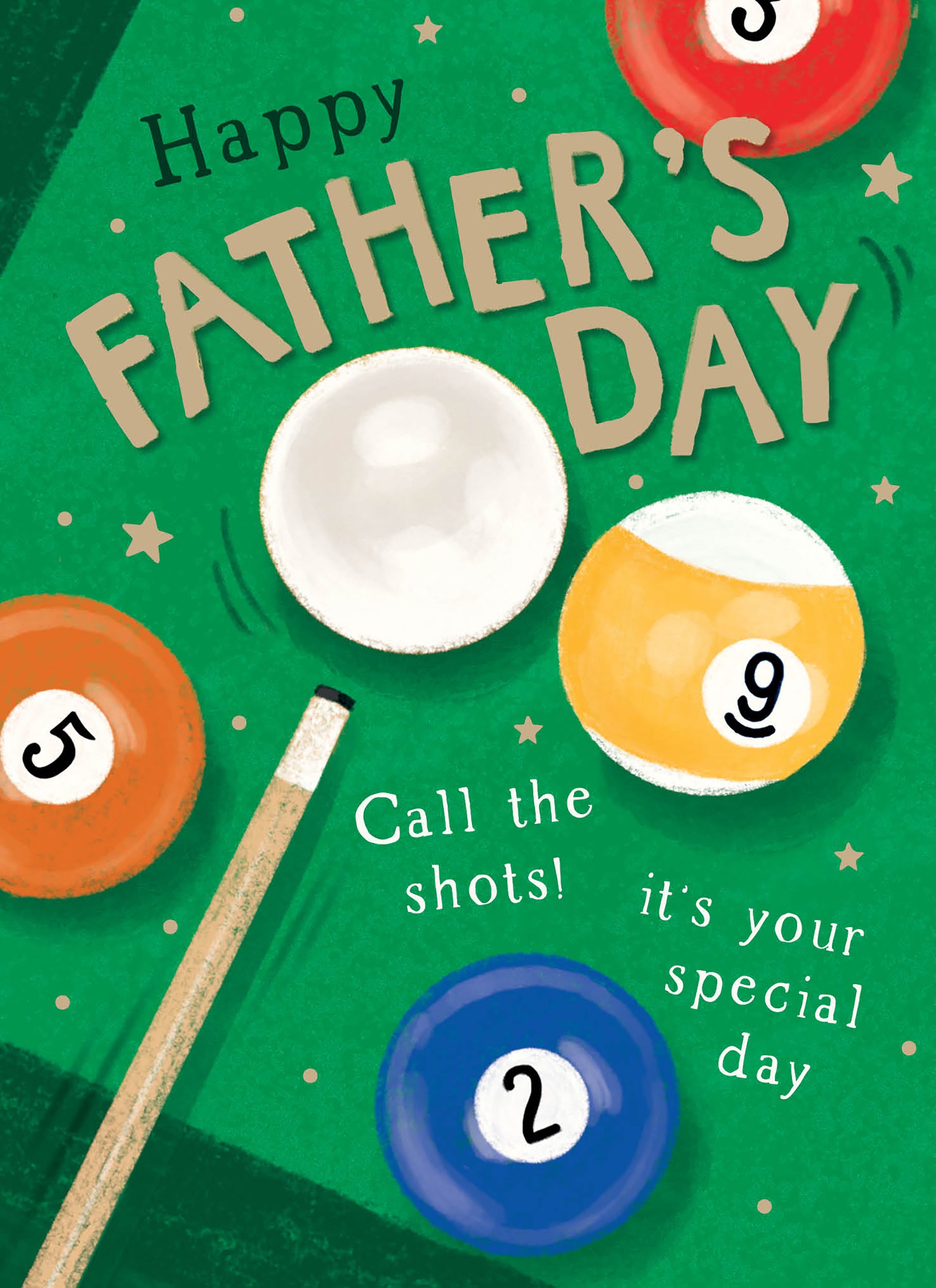Celebrate Father's Day with our delightful pool-themed card, perfect for the dad who loves to call the shots! Featuring vibrant illustrations of billiard balls and a cheerful message that reads, 'Happy Father's Day! Call the shots! it's your special day,' this card is sure to bring a smile to his face.