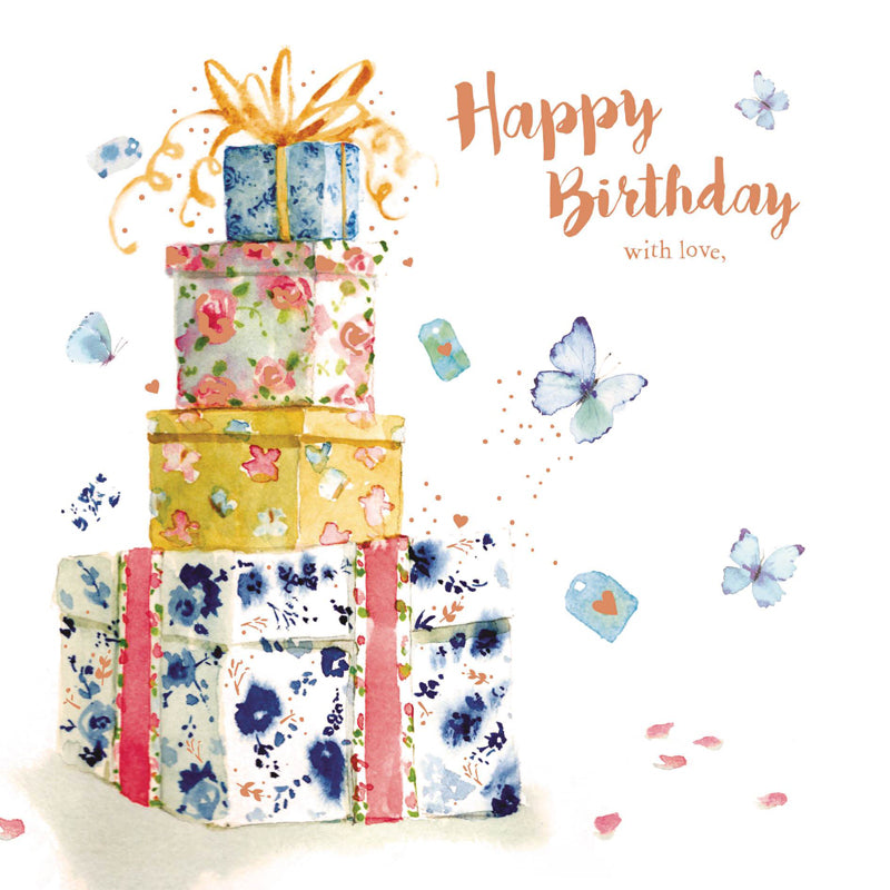 A traditional card by Louise Nisbet. Printed on high-quality board with delicate embossing, foil and glitter details.