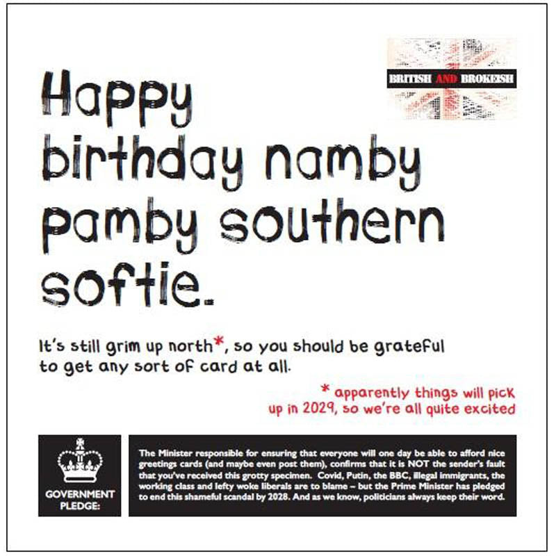 British and Brokeish Card - Happy birthday namby pamby southern softie (Splimple)