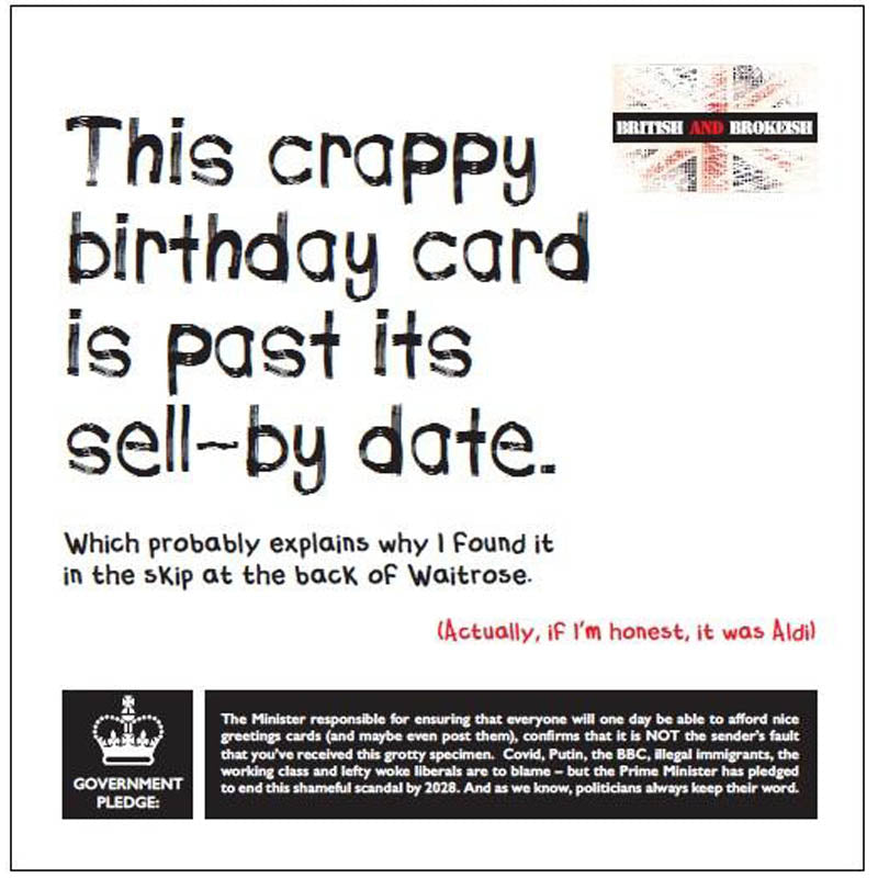 British and Brokeish Card - This crappy birthday card is past its sell-by date (Splimple)