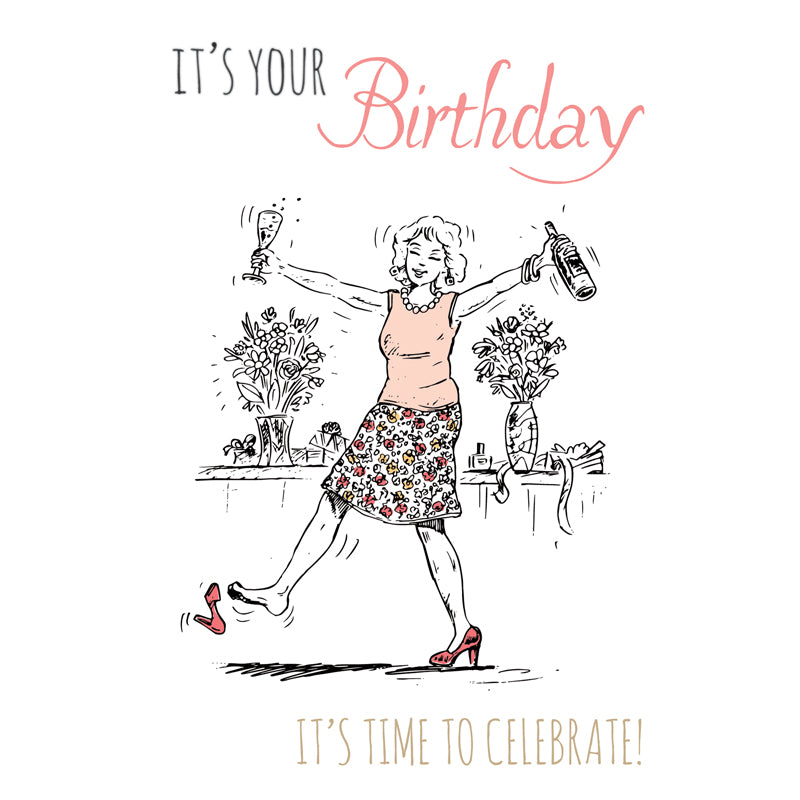 A fun, light-hearted milestone age greetings card with artwork from artist Rob Guy.